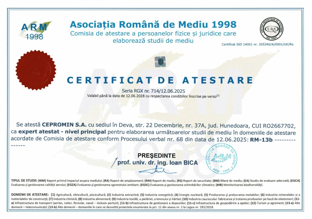 Certificat de atestare studii de mediu
